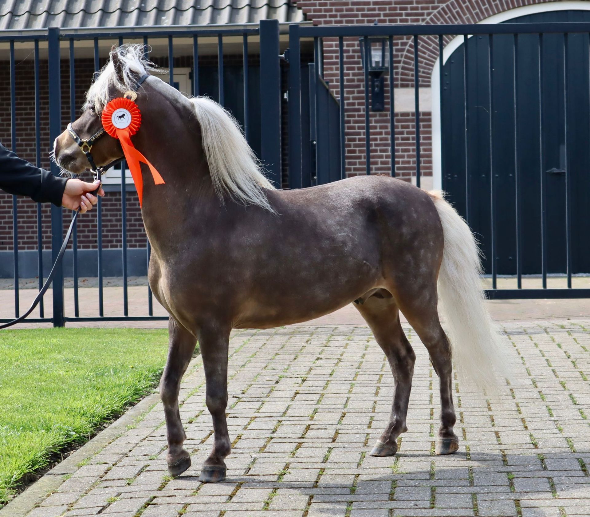 Maar wat een leuke grappig hengstje is het, hij is heel klein en fijn, en ook hij staat nu bij de andere hengsten.